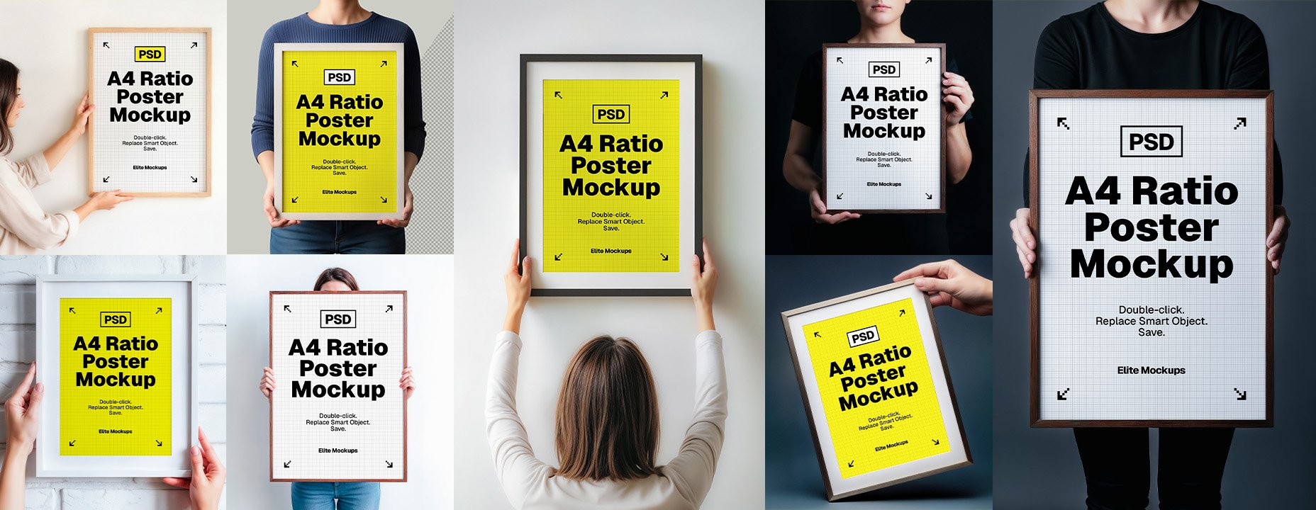 A3 Vertical Poster Frame Mockup with Woman Holding Minimal Wall Art PSD